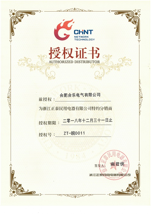 浙江正泰民用電器有限公司授權(quán)合肥合樂(lè)電氣有限公司為正泰電工產(chǎn)品特約分銷商